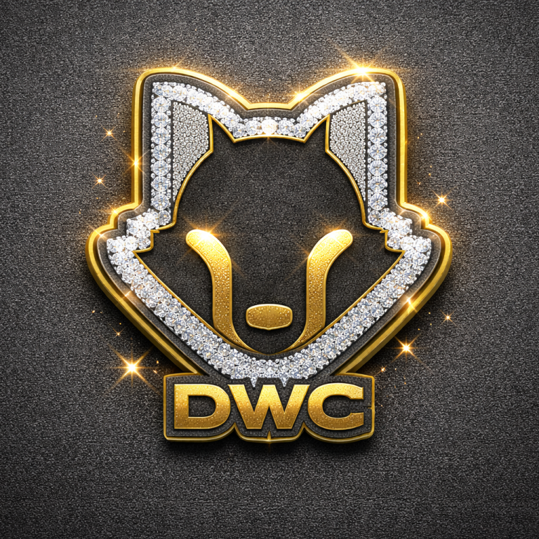 - Diamond Wolf Cap (grey cap, wolf logo outlined in diamond chips, “DWC” embroidered, year stitched)